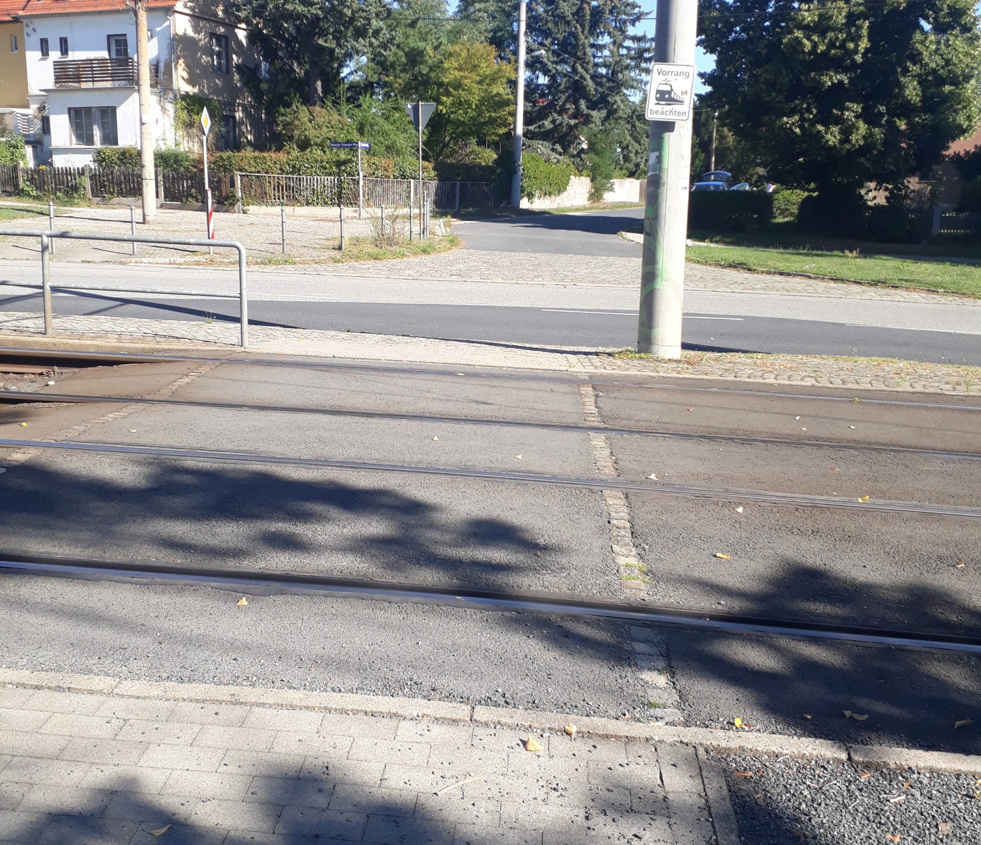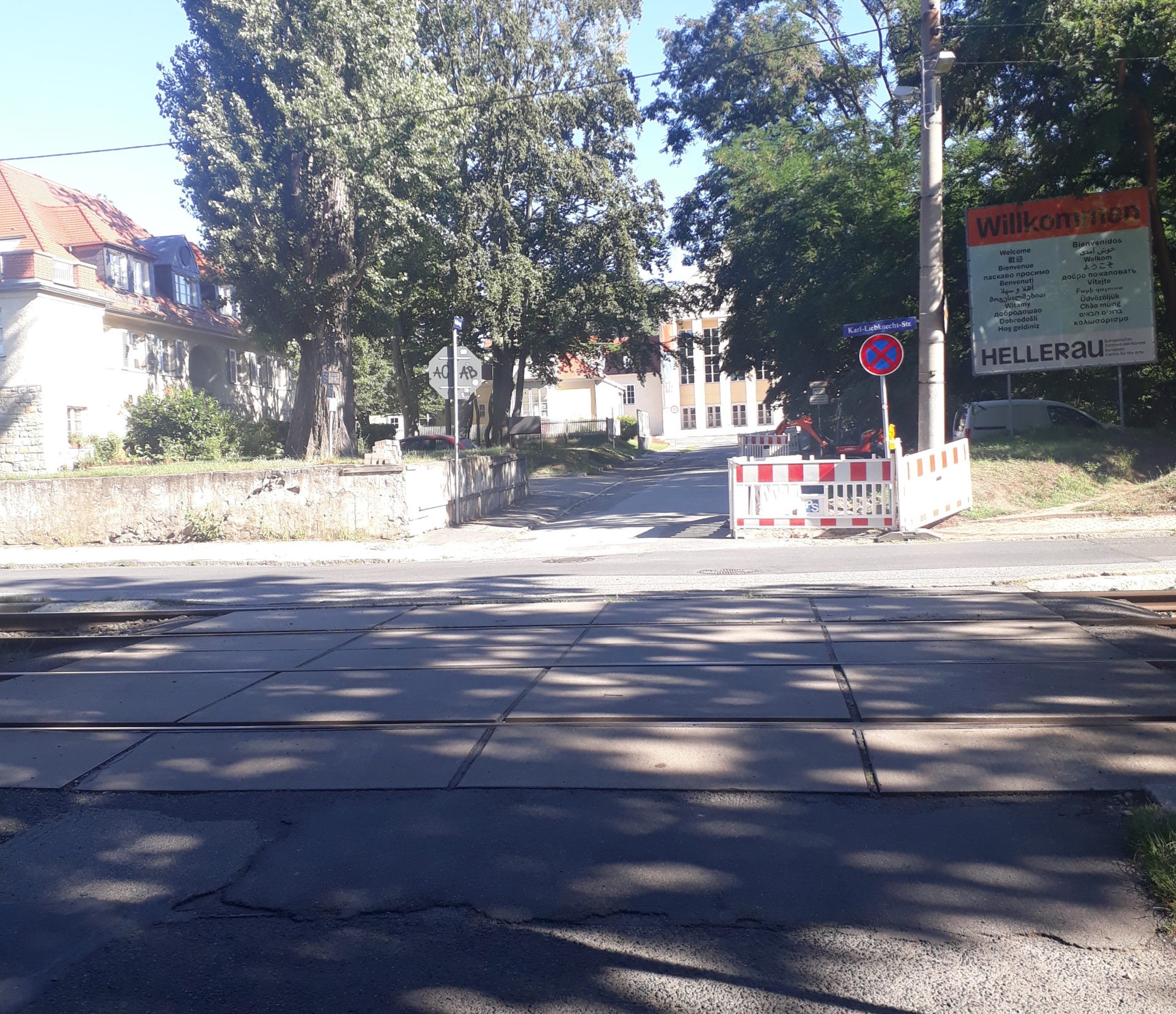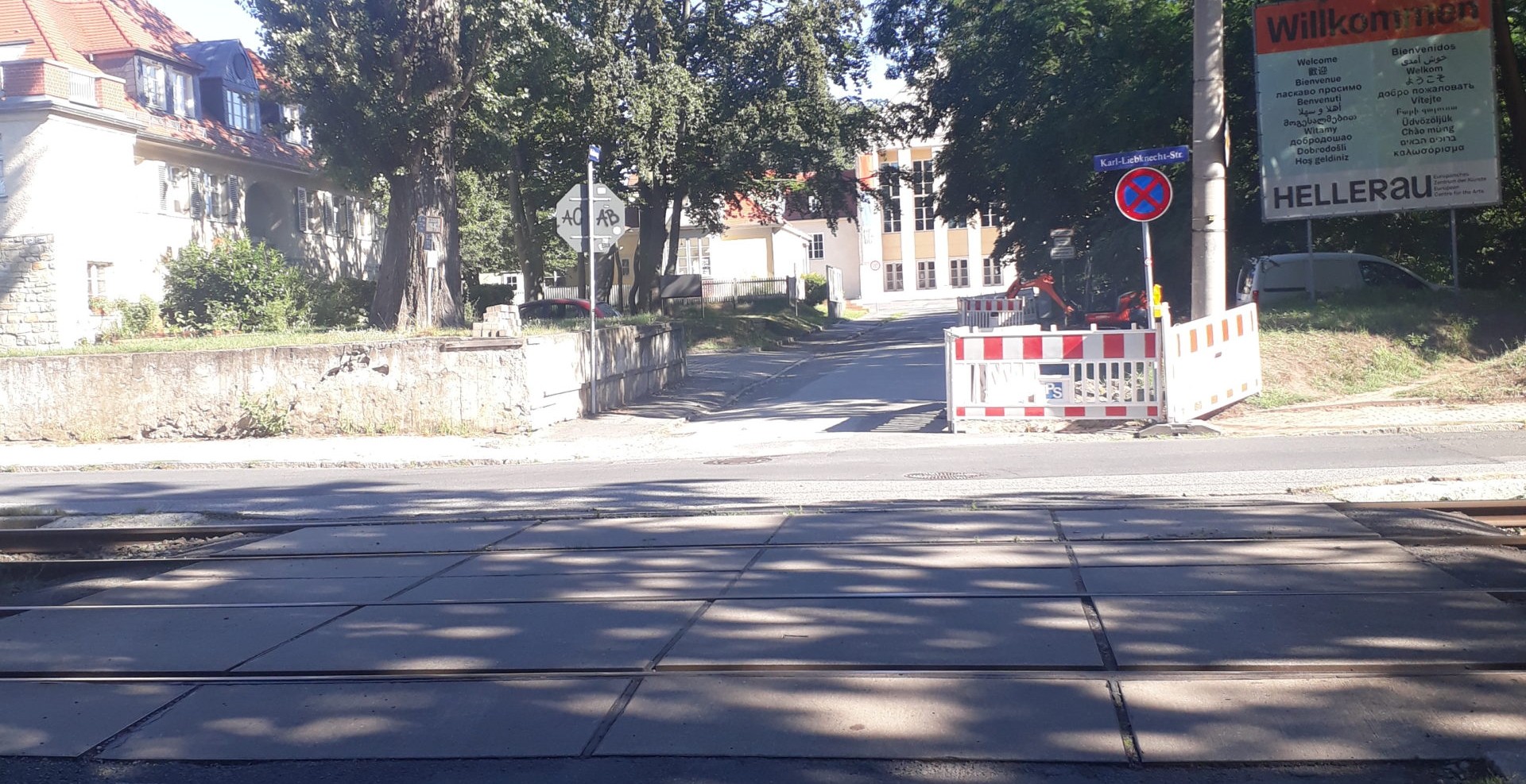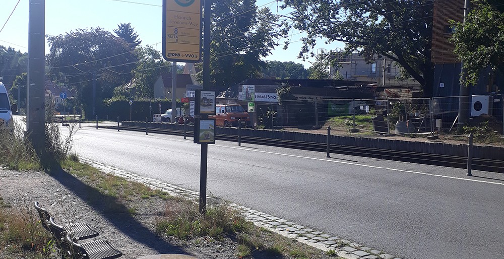 Um von der Haltestelle „Heinrich-Tessenow-Weg“ zum Festspielhaus Hellerau zu gelangen, folgen Sie dem Gehweg der Hauptstraße in Fahrtrichtung auf der rechten Straßenseite aufwärts. Der Weg von der Haltestelle bis zum Festspielhaus beträgt 550 Meter und ist somit länger, als von der Haltestelle „Festspielhaus Hellerau“, jedoch besser berollbar.