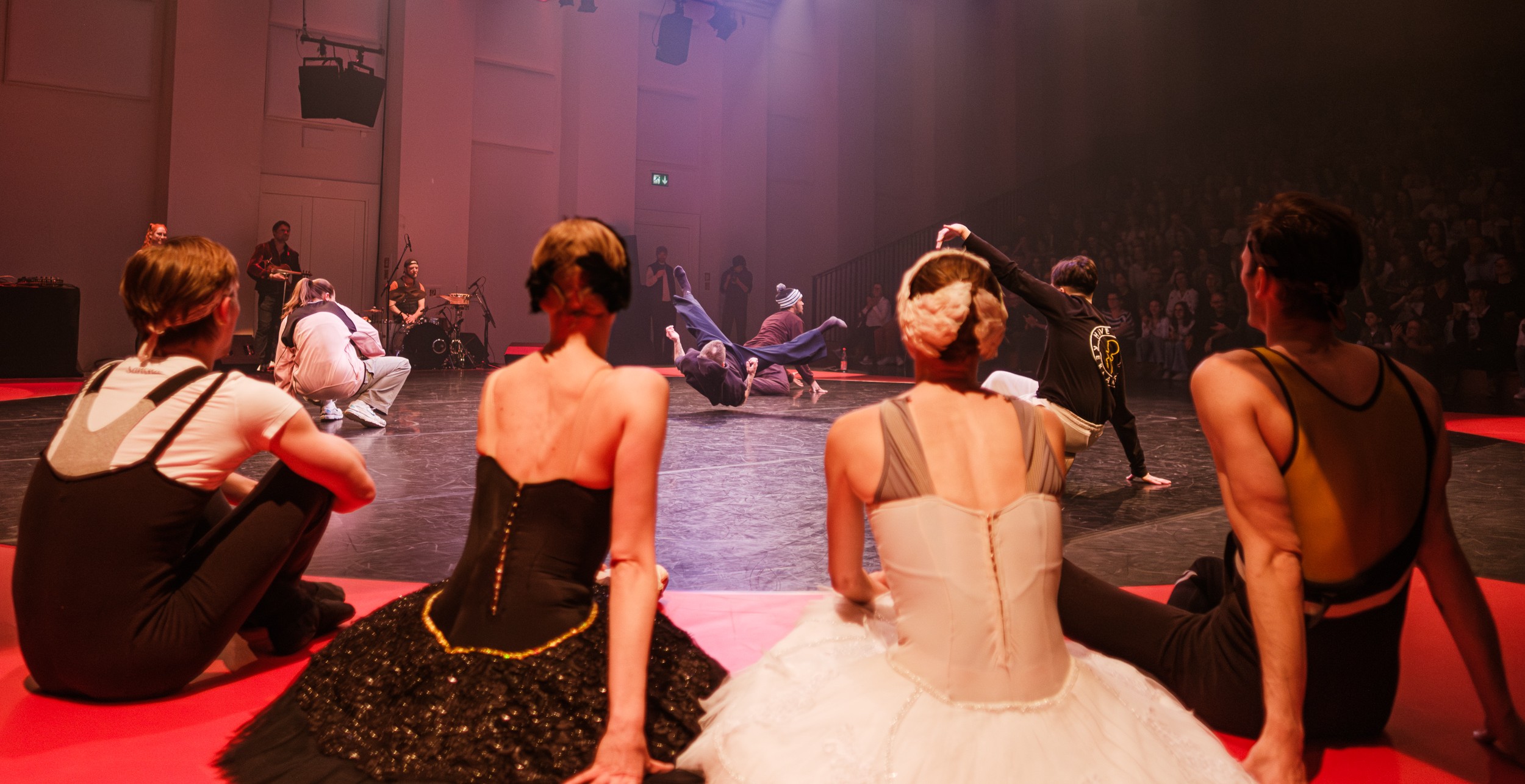 Breakdance versus ballet, street style versus contemporary, hip-hop competes with top-class dance. "Floor on Fire", the innovative dance format by The Saxonz at HELLERAU, thrives on the individuality of the dancers, their virtuoso skills and their unlimited creativity. The performers alternate between ballet, breakdance and contemporary in an attempt to outdo their opponents with their own performance. Without following a choreography, the dancers show the different facets of their respective dance styles with great fun and enthusiasm. An unforgettable experience for dancers and audience alike!
