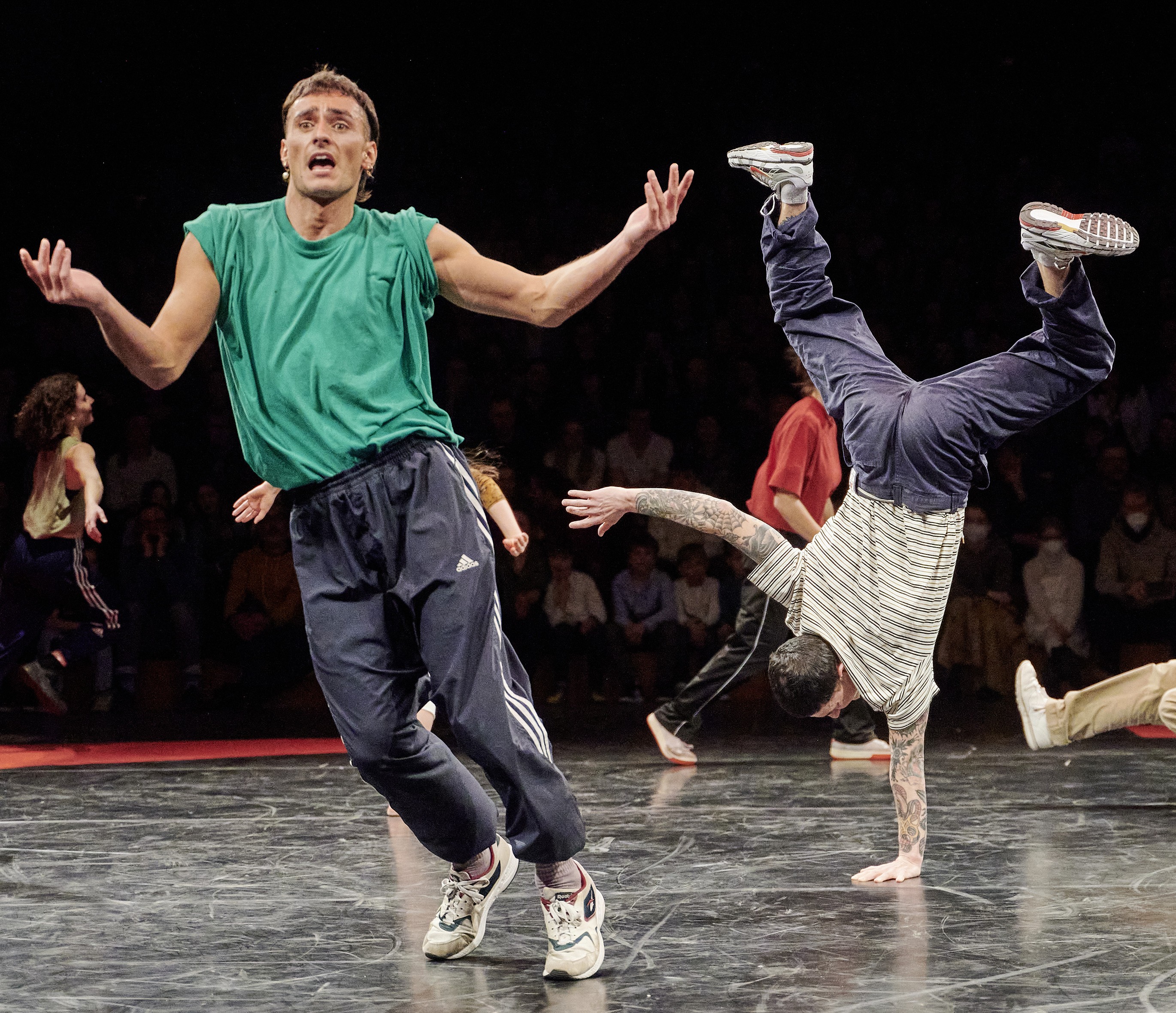 Breakdance gegen Ballett, Streetstyle gegen Contemporary, Hip-Hop misst sich mit Spitzentanz. „Floor on Fire“, das innovative Tanzformat von The Saxonz in HELLERAU lebt von der Individualität der Tänzer*innen, ihrem virtuosen Können und ihrer unbegrenzten Kreativität. Dabei versuchen die Darsteller*innen in abwechselnder Reihenfolge aus den Bereichen Ballett, Breakdance und Contemporary die gegenüberstehenden Kontrahenten durch die eigene Darbietung zu übertrumpfen. Ohne einer Choreografie zu folgen, zeigen die Tänzer*innen mit großem Spaß und Enthusiasmus die verschiedenen Facetten ihres jeweiligen Tanzstils. Ein Erlebnis für Tänzer und Publikum!