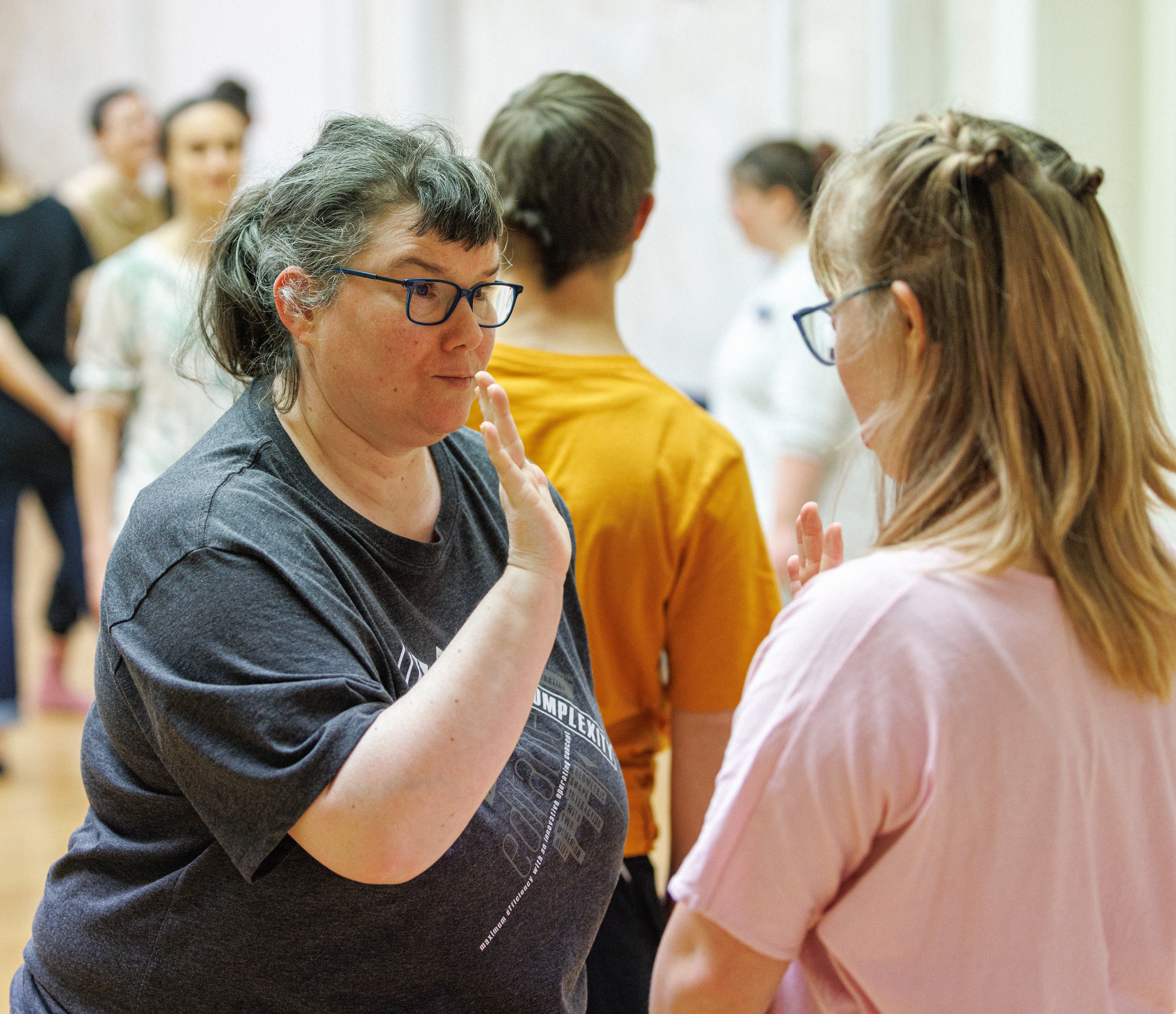 Teilnehmende hatten die Möglichkeit, gemeinsam mit langjährigen farbwerk-Spieler*innen in Bewegung, Berührung und künstlerische Gestaltung einzutauchen und so ihre persönliche, sinnliche und ästhetische Erfahrung zu erweitern. Das Format sollte künstlerische und inklusive Zugangswege verbinden und wurde entsprechend gestaltet, um ästhetisches Erleben gemeinsam auszuprobieren.