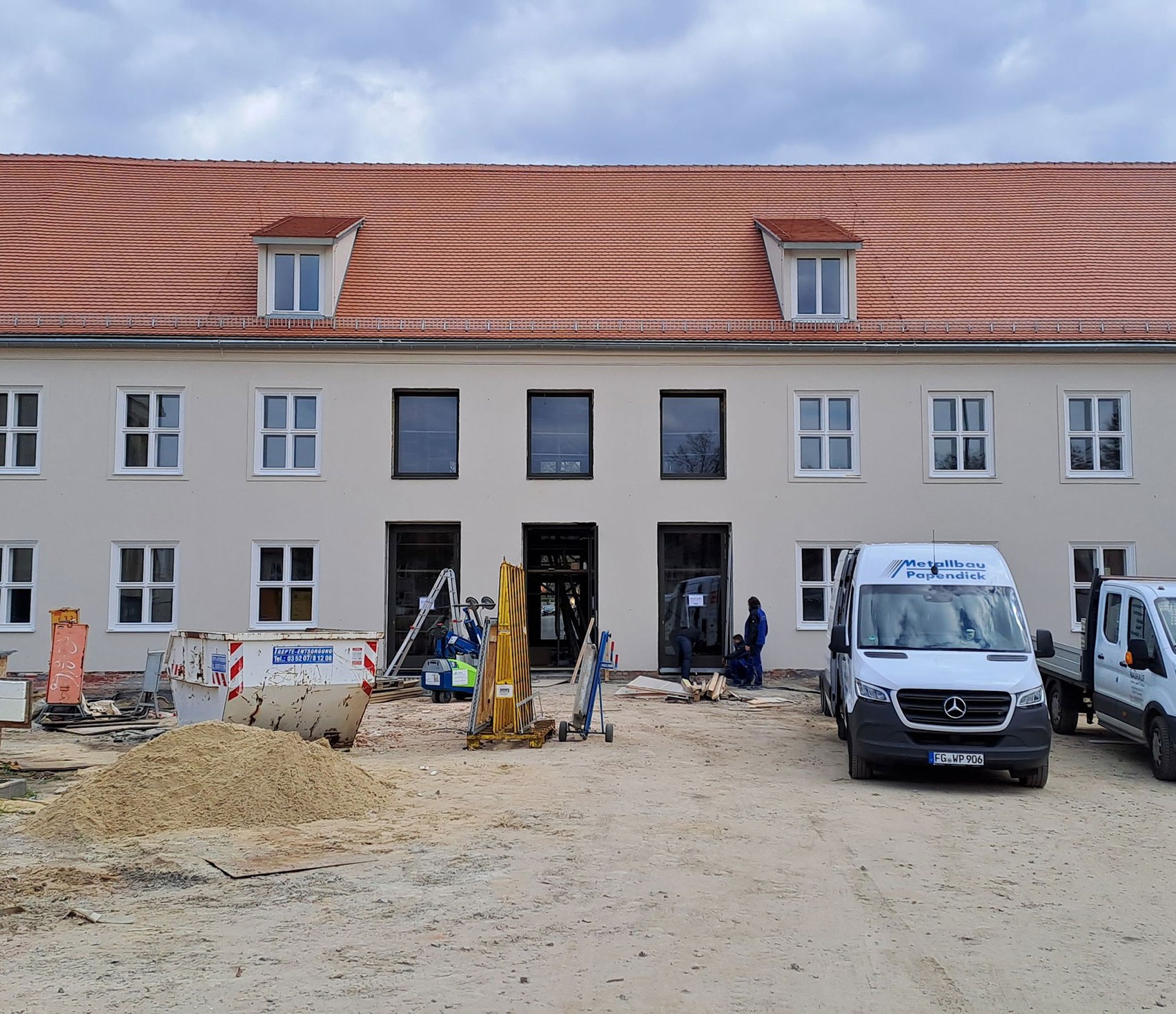 28.04.2023 – Einbau Außenfenster und -türen im Foyer